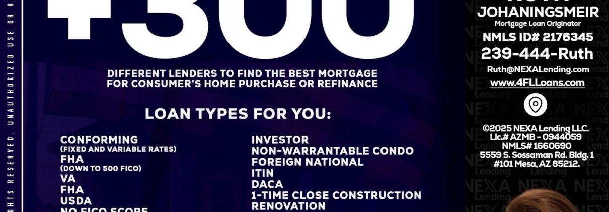 Hi, my name is Ruth Johaningsmeir. I’m a Loan Officer with NEXA Lending LLC., offering personalized mortgage solutions, fast customized quotes, great rates and service with integrity.