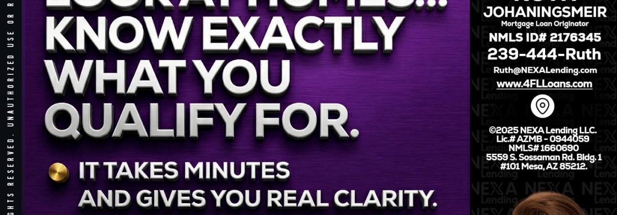 Hi, my name is Ruth Johaningsmeir. I’m a Loan Officer with NEXA Lending LLC., offering personalized mortgage solutions, fast customized quotes, great rates and service with integrity.