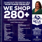 WE SHOP 280 + - Ruth Johaningsmeir -Mortgage Loan OriginatorHi, my name is Ruth Johaningsmeir. I’m a Loan Officer with NEXA Mortgage LLC., offering personalized mortgage solutions, fast customized quotes, great rates and service with integrity.