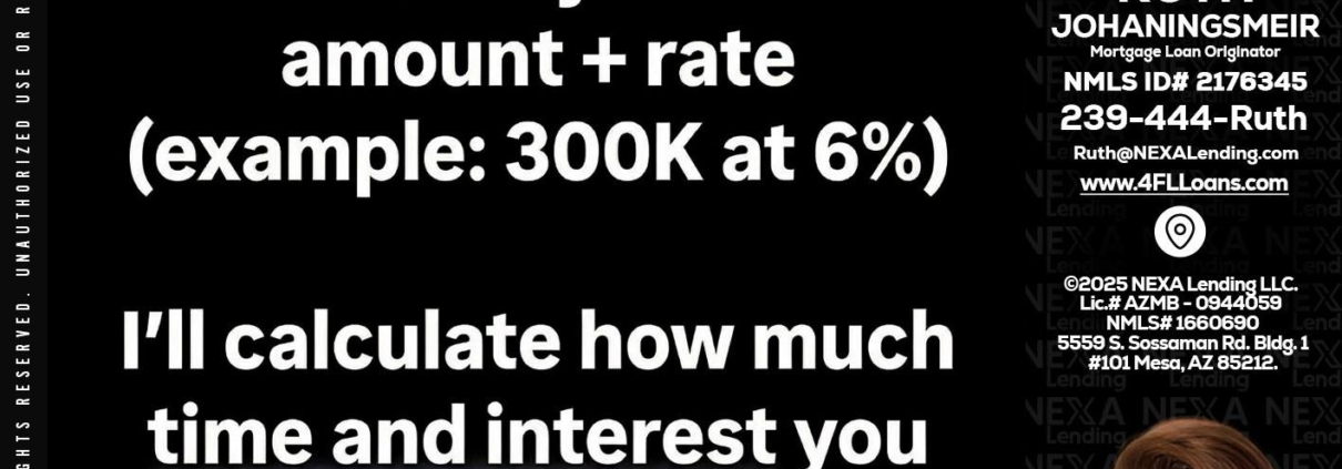 Hi, my name is Ruth Johaningsmeir. I’m a Loan Officer with NEXA Lending LLC., offering personalized mortgage solutions, fast customized quotes, great rates and service with integrity.