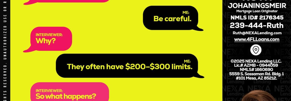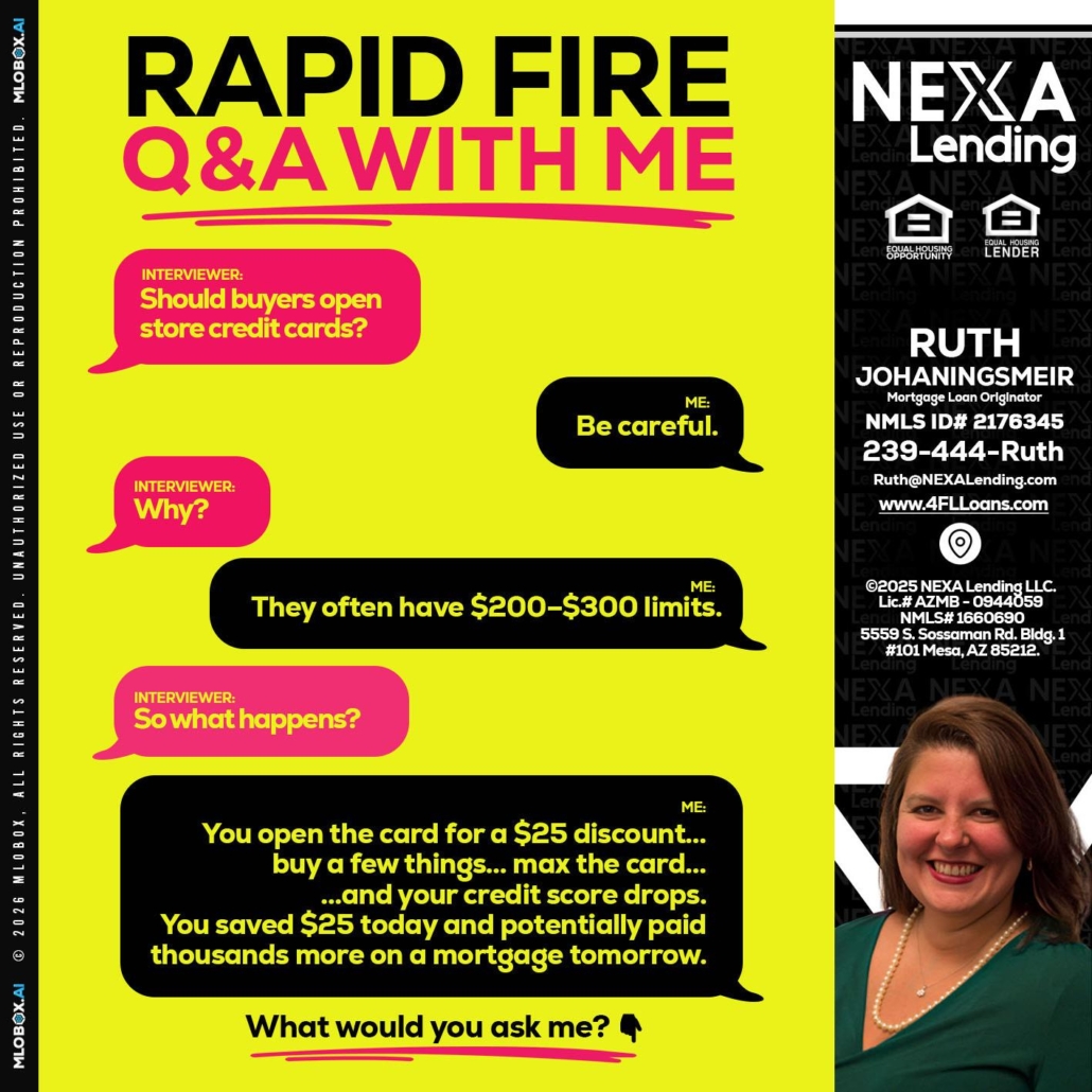 RAPID FIRE Q&A - Ruth Johaningsmeir -Mortgage Loan OriginatorHi, my name is Ruth Johaningsmeir. I’m a Loan Officer with NEXA Lending LLC., offering personalized mortgage solutions, fast customized quotes, great rates and service with integrity.