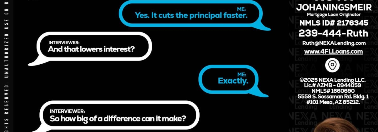 Hi, my name is Ruth Johaningsmeir. I’m a Loan Officer with NEXA Lending LLC., offering personalized mortgage solutions, fast customized quotes, great rates and service with integrity.