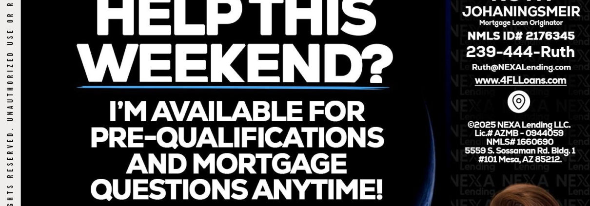 Hi, my name is Ruth Johaningsmeir. I’m a Loan Officer with NEXA Lending LLC., offering personalized mortgage solutions, fast customized quotes, great rates and service with integrity.