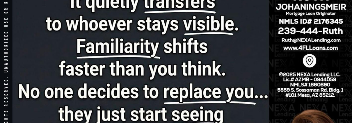 Hi, my name is Ruth Johaningsmeir. I’m a Loan Officer with NEXA Lending LLC., offering personalized mortgage solutions, fast customized quotes, great rates and service with integrity.