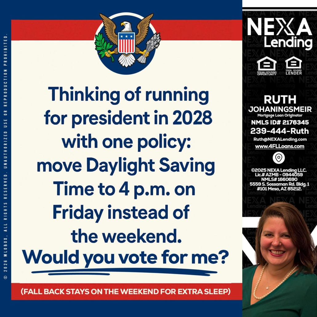 Hi, my name is Ruth Johaningsmeir. I’m a Loan Officer with NEXA Lending LLC., offering personalized mortgage solutions, fast customized quotes, great rates and service with integrity.