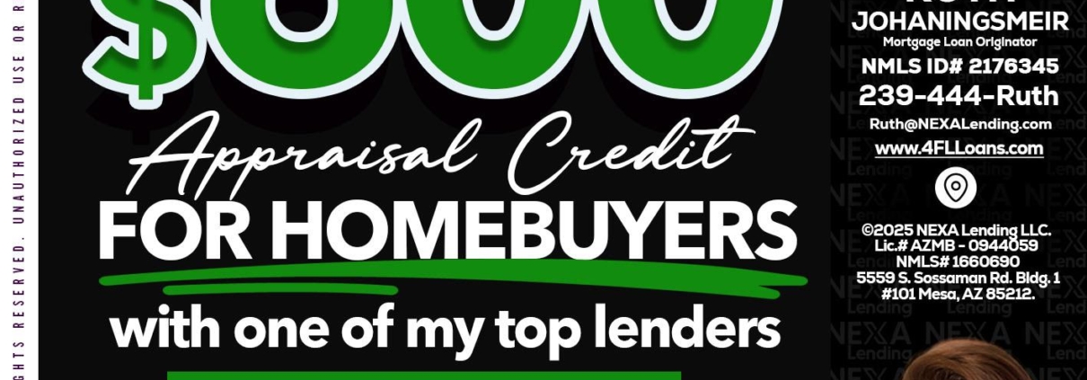 up to $600 - Ruth Johaningsmeir -Mortgage Loan OriginatorHi, my name is Ruth Johaningsmeir. I’m a Loan Officer with NEXA Lending LLC., offering personalized mortgage solutions, fast customized quotes, great rates and service with integrity.