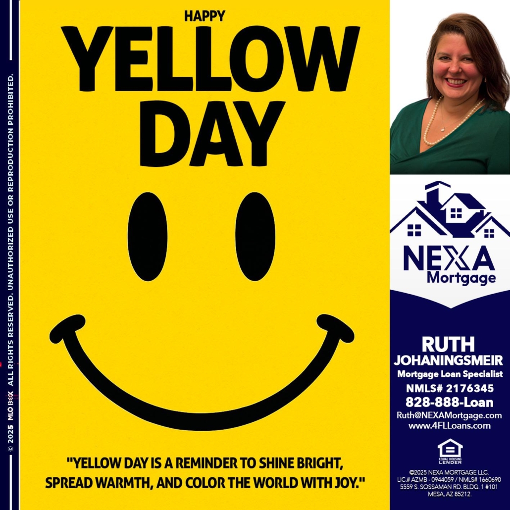 YELLOW DAY - Ruth Johaningsmeir -Mortgage Loan OriginatorHi, my name is Ruth Johaningsmeir. I’m a Loan Officer with NEXA Mortgage LLC., offering personalized mortgage solutions, fast customized quotes, great rates and service with integrity.
